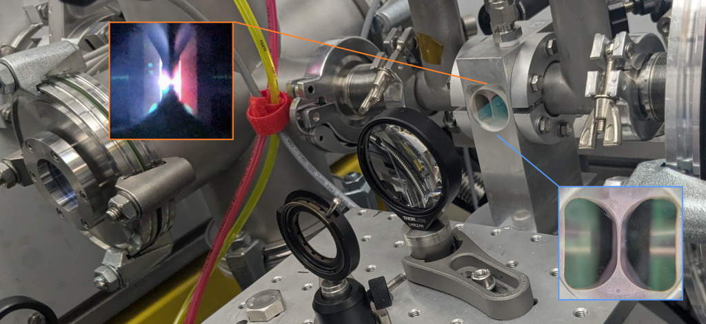 The LASERIX laser platform delivers ultra-short, high-intensity pulses with a peak power of 50 terawatts. Each pulse lasts just 40 femtoseconds (40 quadrillionths of a second) and propagates through a mixture of helium and nitrogen gas, forming a plasma where electrons are expelled from high high-intensity region of the laser pulse, creating a plasma wake where some electrons can be trapped are accelerated — similar to a wakeboarder riding the wave behind a boat. During the current commissioning phase, LASERIX operates at 1 Hz and is expected to reach 10 Hz within the next year.